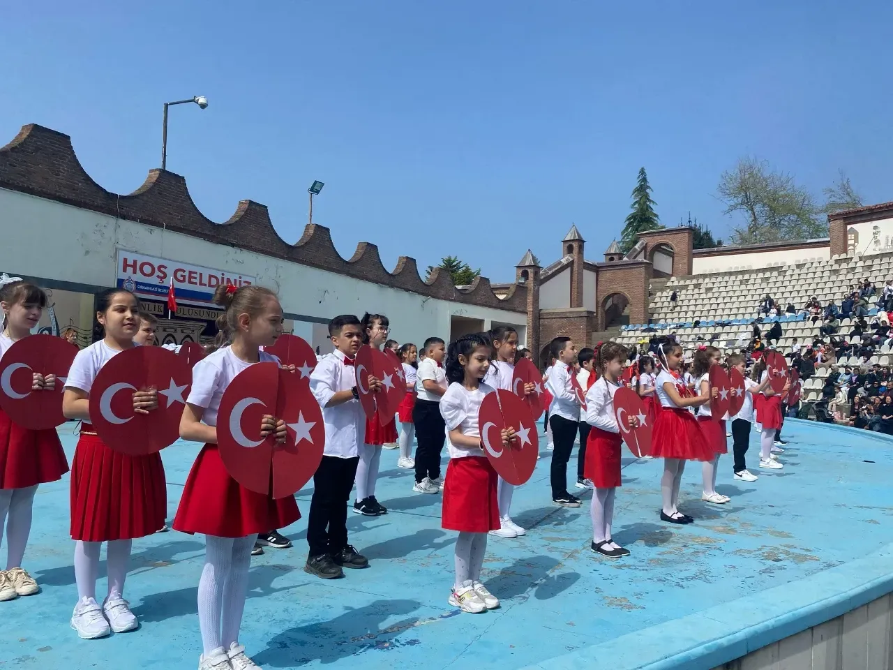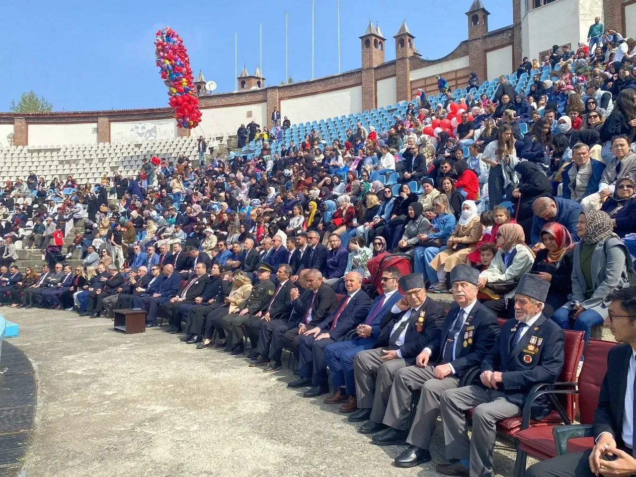 Çelenk sunma töreninin ardından 23 Nisan etkinlikleri, Mehmet Turgut Ünlü Açık Hava Tiyatrosu’nda devam etti. Protokol üyelerinin de yer aldığı programda öğrenciler tarafından hazırlanan gösteriler izleyicilerle buluştu.