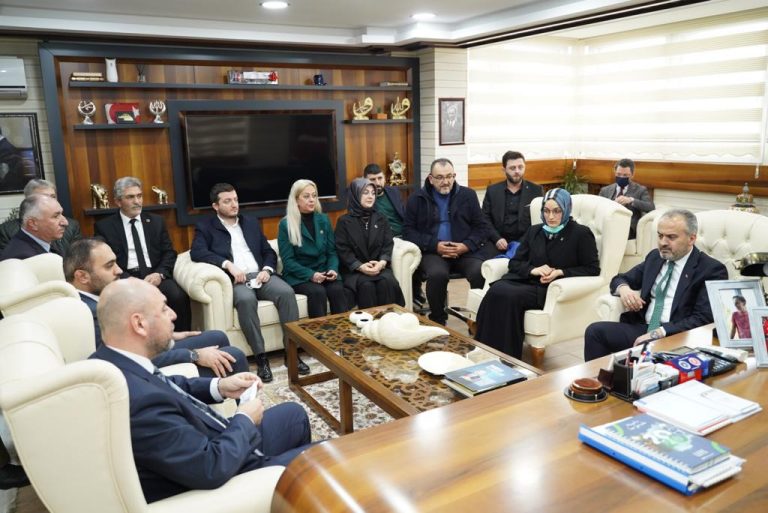 Muhtarlarla planlama toplantısı için Orhangazi’ye gelen Alinur Aktaş, Belediye Başkanı Bekir Aydın’ı makamında ziyaret etti.