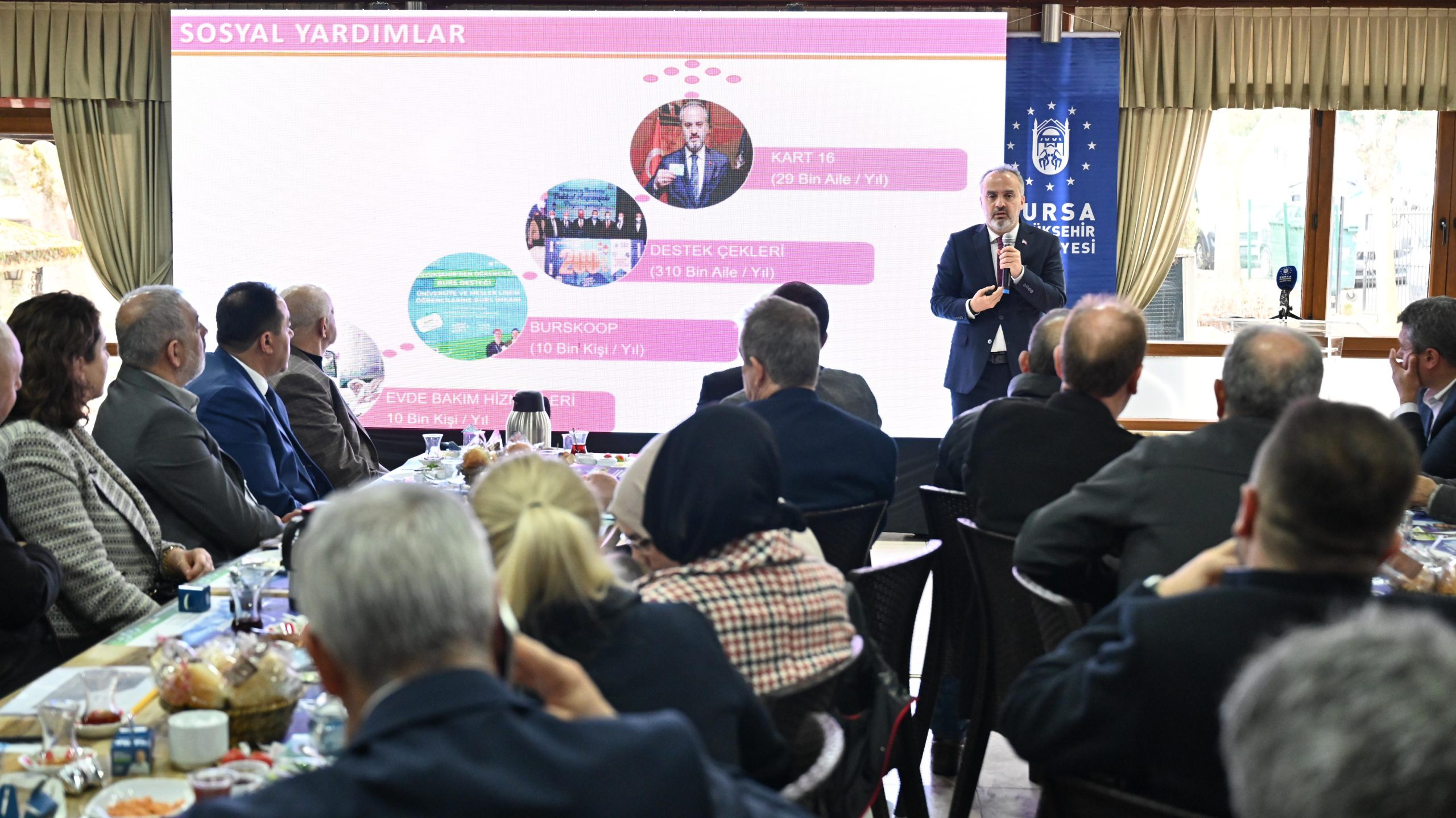 Son 5 senede yapılan çalışmaları sunum eşliğinde anlatan Başkan Aktaş, ulaşımdan kentsel dönüşüme, sosyal yatırımlardan spora kadar Bursa’ya kazandırılan hizmetler konusunda katılımcılara bilgi verdi.