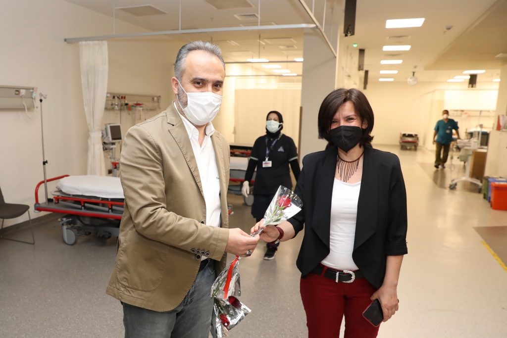 Kısa bir süre önce kovid tedavisi gördüğü Şehir Hastanesi’ni hemşireler Haftası ve Dünya Hemşireler Günü dolayısıyla ziyaret ettiklerini belirten Başkan Alinur Aktaş, “Sağlık sektöründe emek ve hizmet vermiş, hala da görevinin başında olan çalışanların Hemşireler Günü’nü kutluyorum. Hayatını kaybedenlere Allah’tan rahmet diliyorum. Son süreç, sağlığın olmazsa olmaz olduğunu bir kez daha gösterdi. Sağlık varsa her şey değerli ve kıymetli. Tedavi gördüğüm 14 gün boyunca sağlık çalışanlarının can siperane gayret gösterdiğine şahit oldum. Süreci bitirebilmek için herkesin mücadelesi var. Rakamlar da iyiye doğru gidiyor. Daha iyiye gidecektir. Tekrar Hemşirelik Haftası kutlu olsun” dedi.
