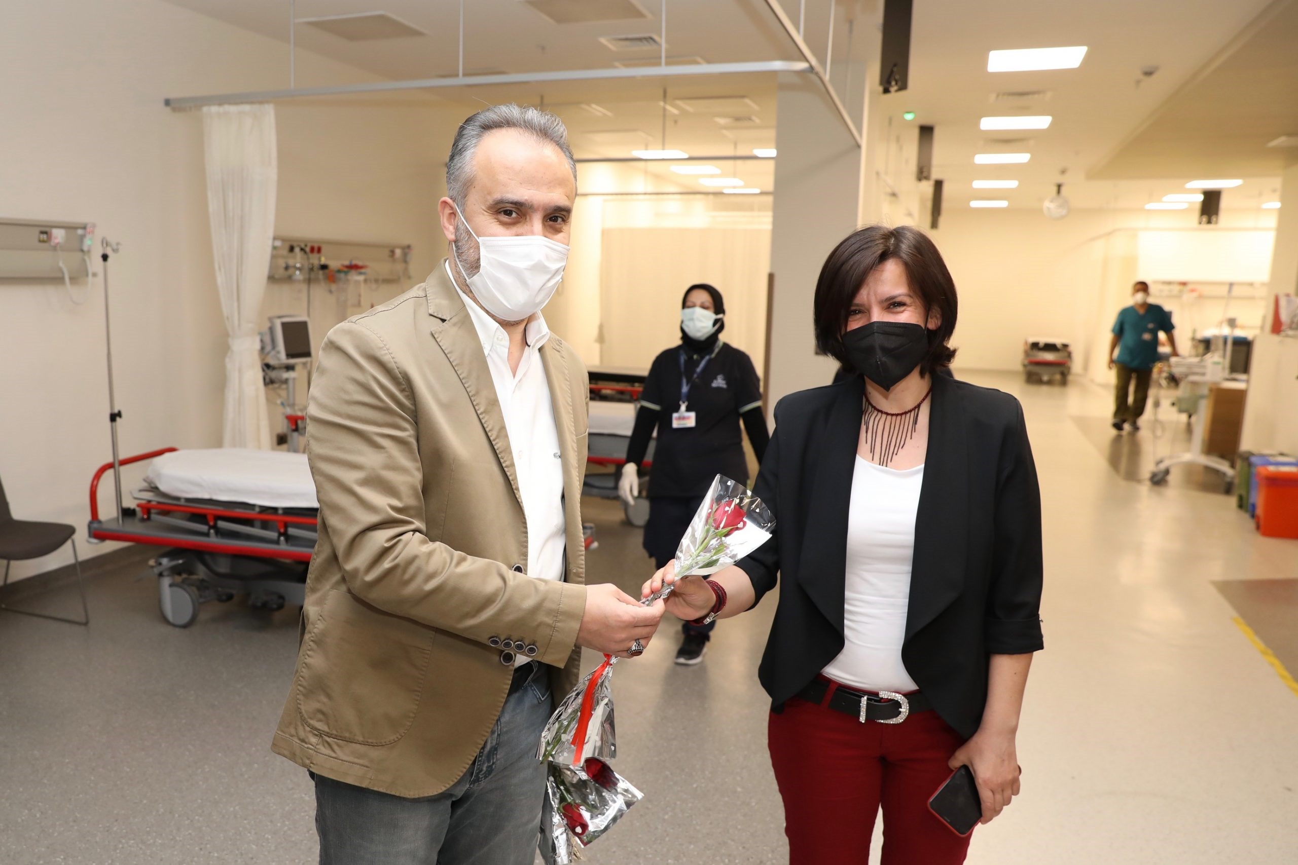 Bursa Büyükşehir Belediye Başkanı Alinur Aktaş, Bursa Şehir Hastanesi’ni ziyaret edip hemşirelere ve sağlık çalışanlarına karanfil vererek 12-18 Mayıs Hemşireler Haftası’nı kutladı.