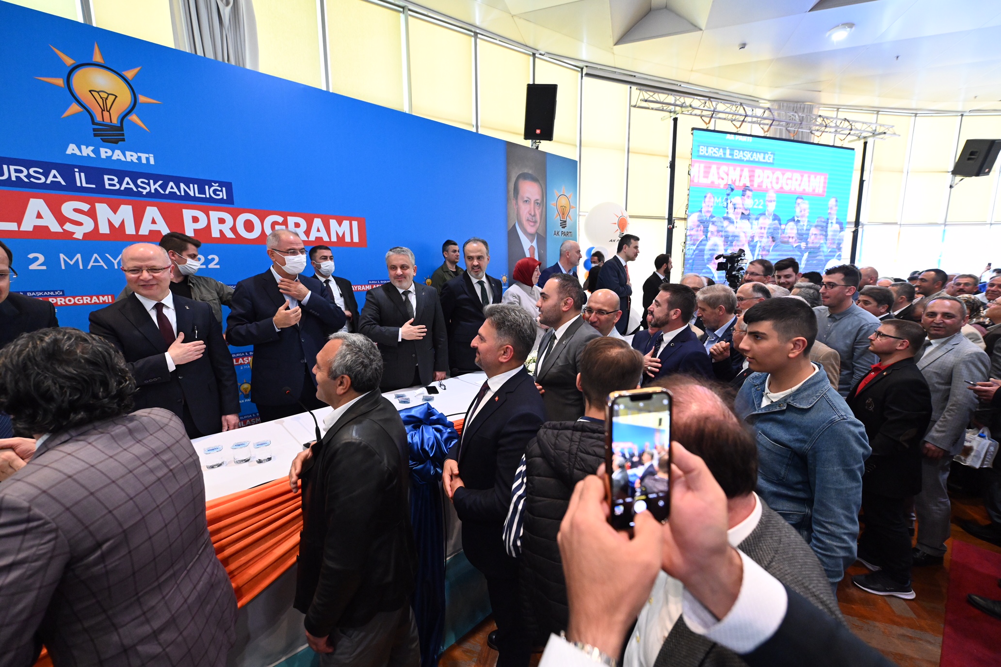Pandeminin etkisini kaybetmesiyle AK Parti İl Başkanlığı tarafından yüz yüze düzenlenen bayramlaşma töreni, yoğun katılımla yapıldı. Büyükşehir Belediye Başkanı Alinur Aktaş, tek hedeflerinin Bursa merkez ve 17 ilçeyi daha yaşanabilir bir şehir haline getirmek olduğunu söyledi.