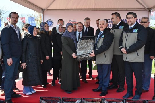 Üreticilerin ihtiyaçları doğrultusunda geliştirdikleri projeleri Bursa’nın dört bir yanında hayata geçirdiklerini anlatan Başkan Mustafa Bozbey, Mustafakemalpaşa’da atıl durumdaki tesisleri aktif hale getirerek damla sulama boru üretim tesisini hizmete açtıklarını hatırlattı. Sıvı gübre üretim tesisine de değinen Başkan Bozbey, 4 bin bidon sıvı gübrenin hazır durumda olduğunu dile getirdi. Çiftçinin yüzünü güldürmeyi amaçladıklarını söyleyen Başkan Bozbey, “Çiftçinin yüzü güldüğünde Bursa’nın da yüzü gülecek. Ayrıca projelerimizi çevreye duyarlı bir şekilde yapıyoruz. Damla sulama boru üretim tesisindeki her ürün geri dönüşümden elde ediliyor. Bir taraftan toprağımızı korurken, diğer taraftan çevremize sahip çıkıyoruz. Mobil toprak analiz cihazlarımızla çiftçilerimizin hizmetine sunuyoruz. Yaban mersininden aronyaya, kestaneden cevize kadar on binlerce fide ve fidanı çiftçilerimizle buluşturduk. Gemlik’te zeytine, Yenişehir’de Merinos yününe, dağ ilçelerimizde siyez buğdayı tohumuna sahip çıktık. Arpa ve flake desteğimizle de üreticimizin yanında olduk. Tüm projelerimizde üreticimizin emeğini korumak en temel önceliğimizdir. Bu anlayışla tarımda iz bırakan çalışmalar yapıyoruz. Bu yolda en büyük gücümüz çiftçilerimizdir” dedi.