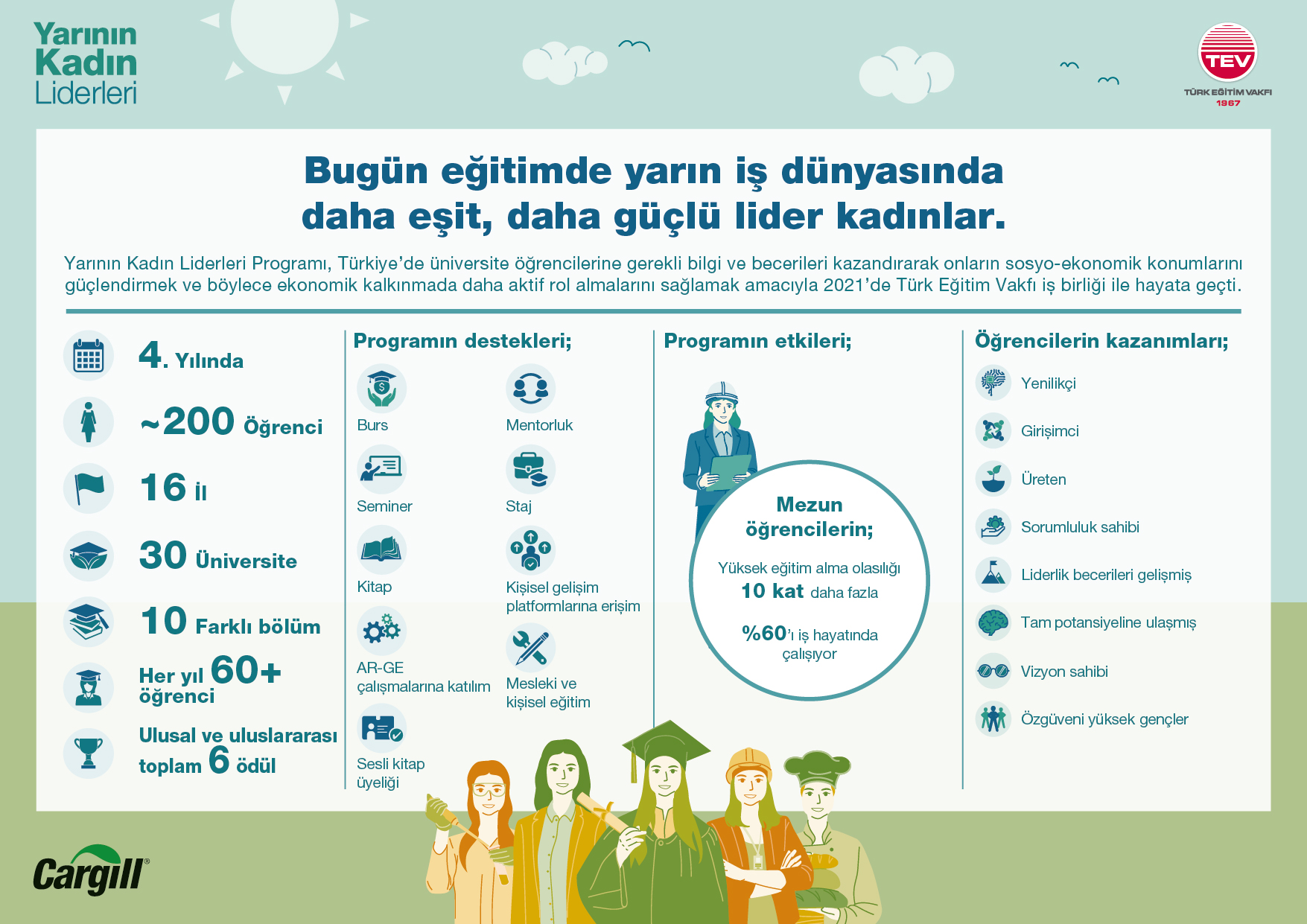 Cargill’in 2021 yılında geleceğin kadın liderlerini yetiştirmek amacıyla Türk Eğitim Vakfı (TEV) iş birliğinde hayata geçirdiği ödüllü Yarının Kadın Liderleri Programı, dördüncü yılına kapasitesini ikiye katlayarak giriyor.