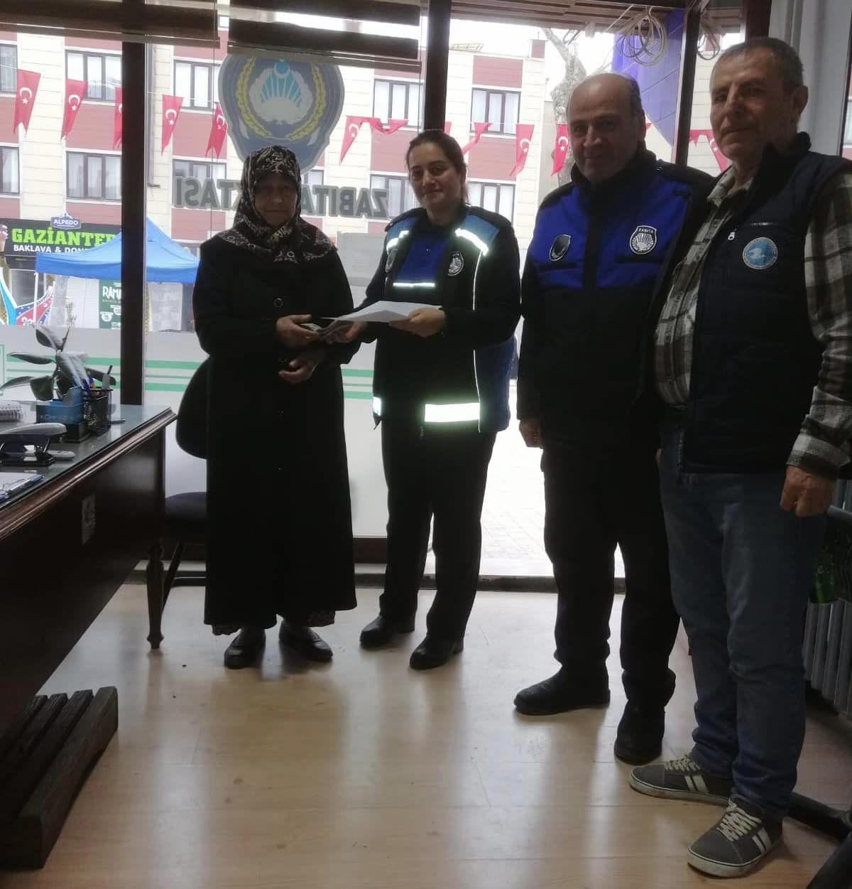 Birim amirlerine haber veren ekipler gerekli incelemeyi yapmasının ardından paketi Zabıta Müdürlüğü’ne teslim ettiler. Zabıta ekipleri paketi inceleyip sayarak gerekli tutanağı tuttu. Paketin sahibinin bulunması için çalışma başlatıldı. Çalışmanın ardından paketin sahibine ulaşılarak para teslim edildi.