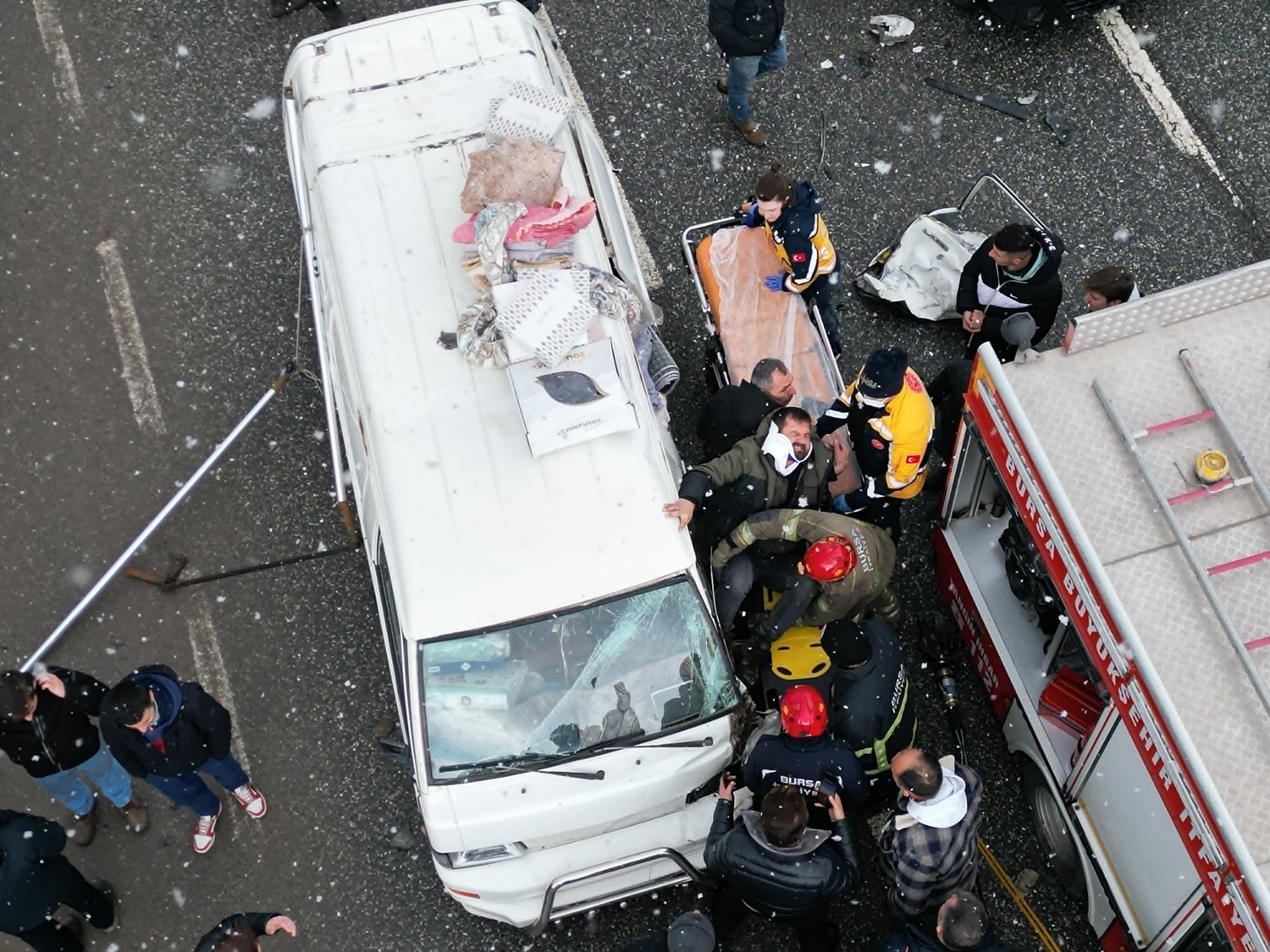 Alınan bilgilere göre Gemlik istikametine seyreden 49 yaşındaki Ersan B’nin kullandığı ev eşyası yüklü minibüs, aynı istikamette seyreden ve sürücünün ismi henüz belirlenemeyen hafif ticari araç ile çarpıştı.