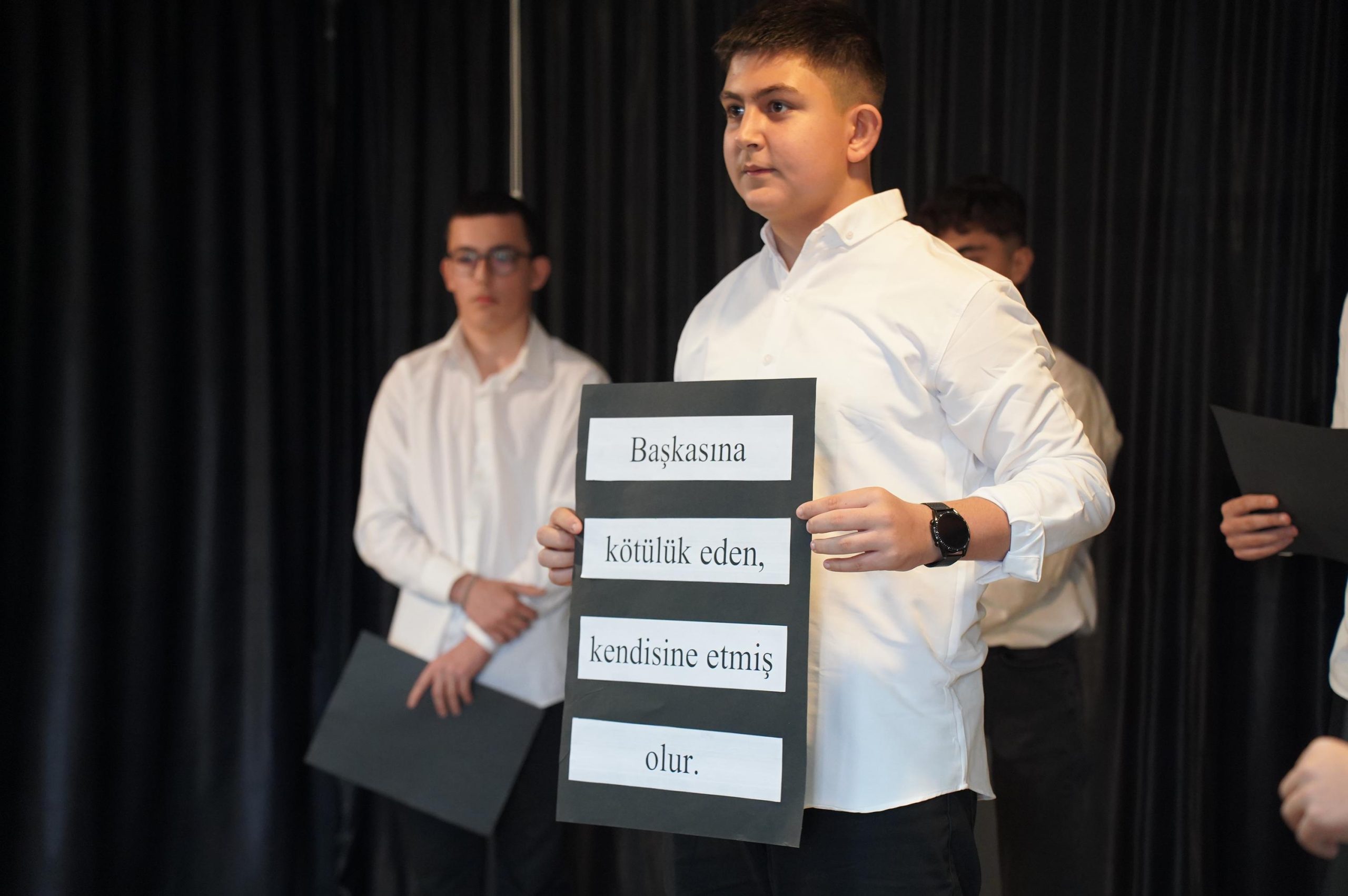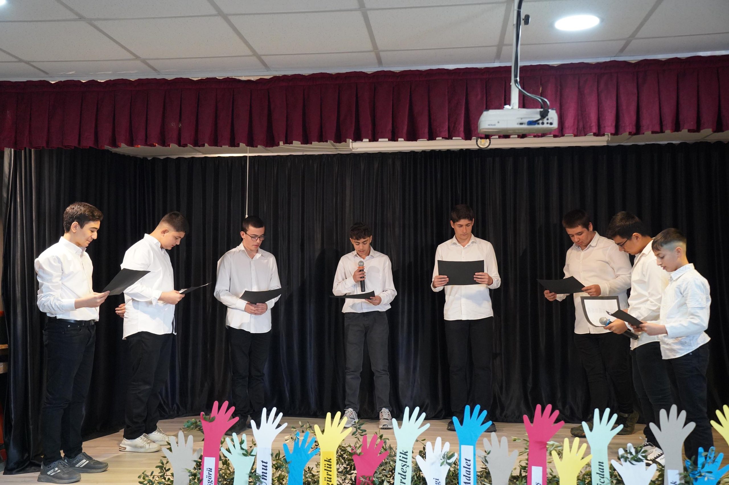 Programda İstiklal Marşı ve saygı duruşunun ardından konuşmalar yapıldı. Resim, kompozisyon ve şiir dallarında dereceye giren öğrencilere ödüller verildi ve eserleri katılımcılarla paylaşıldı. Etkinlik, video, Slayt ve oratoryo gösterisi ile sona erdi. Beyni ile karşılanan program, katılımcıların resim çektirmesiyle tamamlandı.
